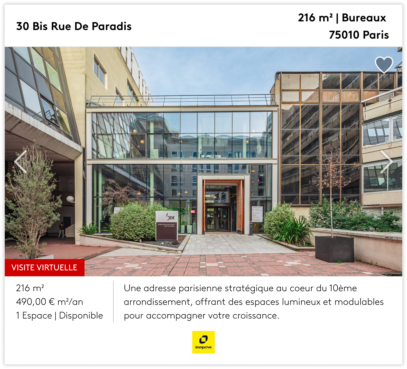 Notre solution la plus exclusive et la plus performante. Atteignez la plus large audience d’occupants, d’acquéreurs et de brokers en cherche de locaux professionnels. Suscitez leur intérêt grâce à un pack média performant et aux options de retargeting incluses.